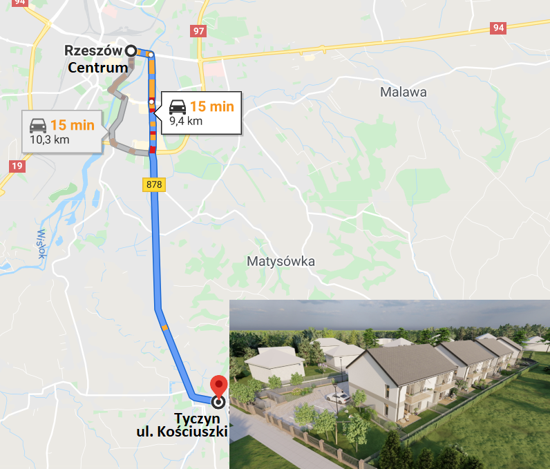 Osiedle Kościuszki II Bliźniaki zlokalizowane jest w Tyczynie przy ul. Kościuszki. Jest to zupełnie nowa inwestycja mieszkaniowa, w skład której wchodzi kompleks budynków w zabudowie bliźniaczej z mieszkaniami o powierzchni parter – 65,59 ( ogródek od 40 m2) i piętro – 72,02 m2 .( możliwość adaptacji strychu na antresolę min 20m2).